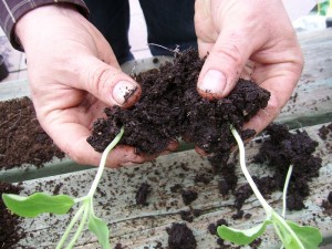 20 april ** Voorzichtig scheiden van de planten, laat zoveel mogelijk grond rond de plant